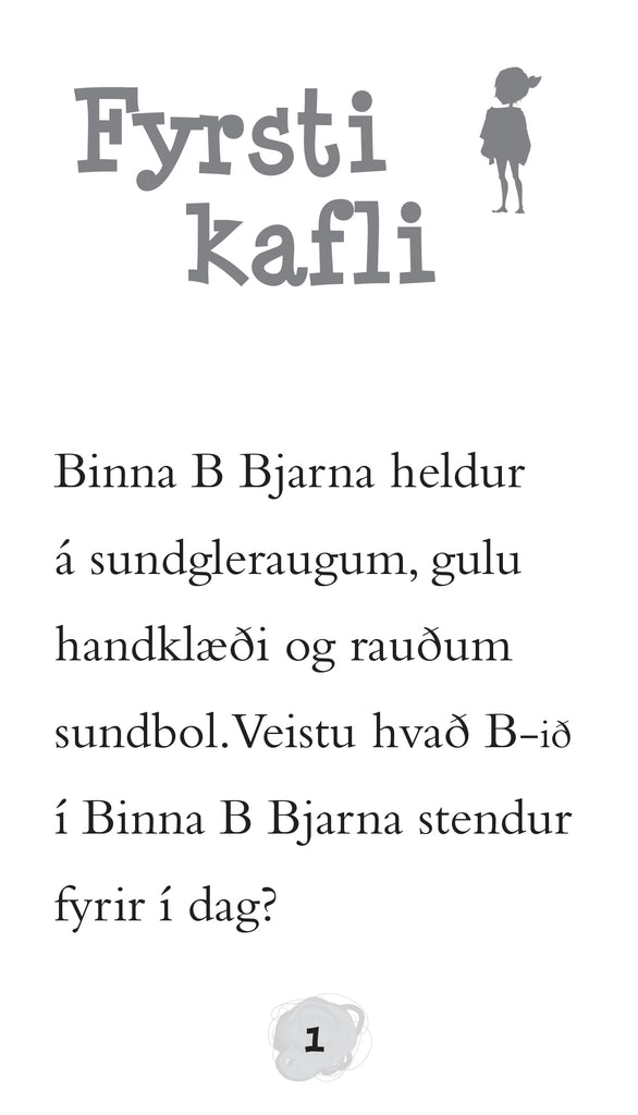Binna er snjöll og sjálfstæð stelpa sem veit hvað hún vill. Hún og besti vinur hennar, hann Jónsi, eru uppátækjasamir krakkar. Í þessari bók er Binna í sundkennslu í grunnu lauginni. Nú er bekkurinn að færa sig yfir í djúpu laugina, ætli Binna þori að taka skrefið?