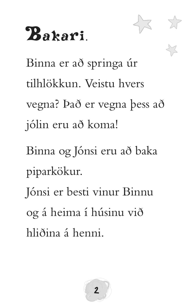 Binna er snjöll og sjálfstæð stelpa sem veit hvað hún vill. Hún og besti vinur hennar, hann Jónsi, eru uppátækjasamir krakkar. Í þessari bók er Binna að springa úr tilhlökkun til jólanna. Hún veit hvar mamma og pabbi hafa falið gjöfina til hennar. Það má alveg kíkja er það ekki?