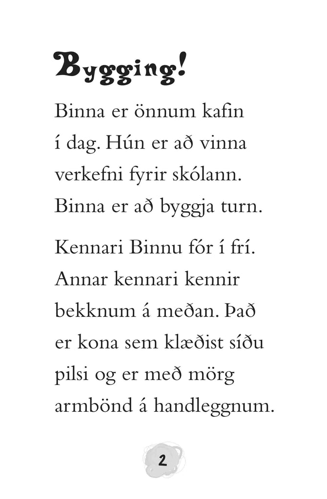 Binna er snjöll og sjálfstæð stelpa sem veit hvað hún vill. Hún og besti vinur hennar, hann Jónsi, eru uppátækjasamir krakkar. Í þessari bók er Binna að gera verkefni fyrir skólann. Hvað gerist þegar litli bróðir hennar Binnu skilur ekki alveg að hann má ekki fikta í dótinu hennar?