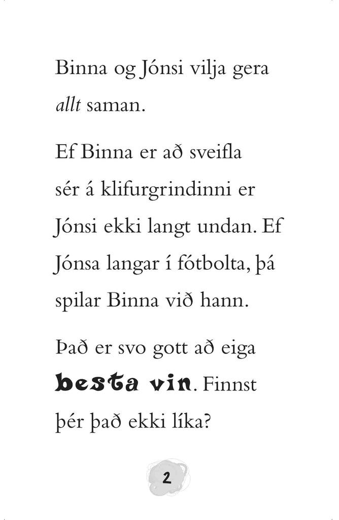 Binna og Jónsi eru bestu vinir. Þau vilja gera allt saman.